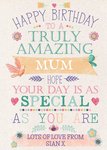 Mum Happy Birthday Card - Truly Amazing - Hope your day is as special