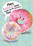 A playful and colourful Mother's Day card featuring two adorable donuts with googly eyes and a fun pun message. The pastel background with sprinkles adds a cheerful touch, making it the perfect card for a mum with a sweet tooth and a great sense of humour.