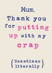 Mum Thanks For Putting Up With My Crap Funny Mother's Day Card