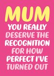 Mum You Really Deserve The Recognition For How Perfect I've Turned Out Chunky Text Typography Mother's Day Card