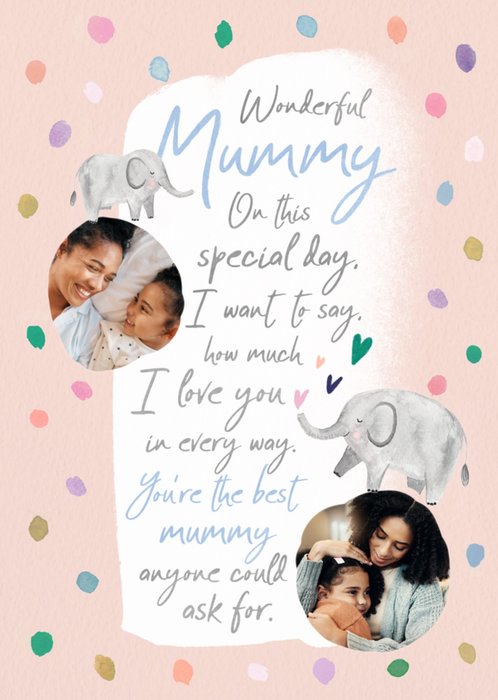 "Wonderful Mummy, on this special day I want to say how much I love you in every way. You're the best Mummy anyone could ask for."
