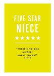Features white and black text on a vibrant yellow background. Text reads "Five Star Niece. There's No One Niecer! Sorry, Nicer!"