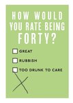 "HOW WOULD YOU RATE BEING FORTY? GREAT. RUBBISH. TOO DRUNK TO CARE."