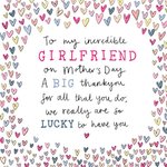 Text reads: "To my incredible girlfriend on Mother's Day a big thankyou for all that you do, we really are so lucky to have you."