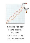 "My love for you keeps rising, Alison! (A bit like the cost of living!)".