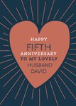 "HAPPY FIFTH ANNIVERSARY TO MY LOVELY HUSBAND DAVID" with editable number, relation and name text.