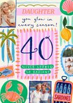 Playful collage style design with hand drawn illustrations of a crab, lemon, palm tree, seashell, fish, and a tin of sardines on a pastel striped background. Includes three photo upload frames.