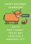 “Happy Birthday Grandson”, "Dave?", "Fifty? Don't worry, you're not completely burgered yet!".