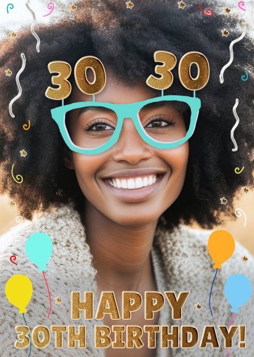Novelty Glasses 30th Birthday Photo Upload Card