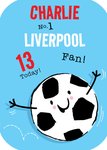 "Charlie. No. 1 Liverpool fan. 13 today!" The name, age and football team are editable.