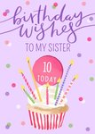 Okey Dokey Illustrated Cupcake Sister 10 Today Birthday Card