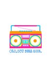 White background with bright illustration of a retro style ghetto blaster stereo.