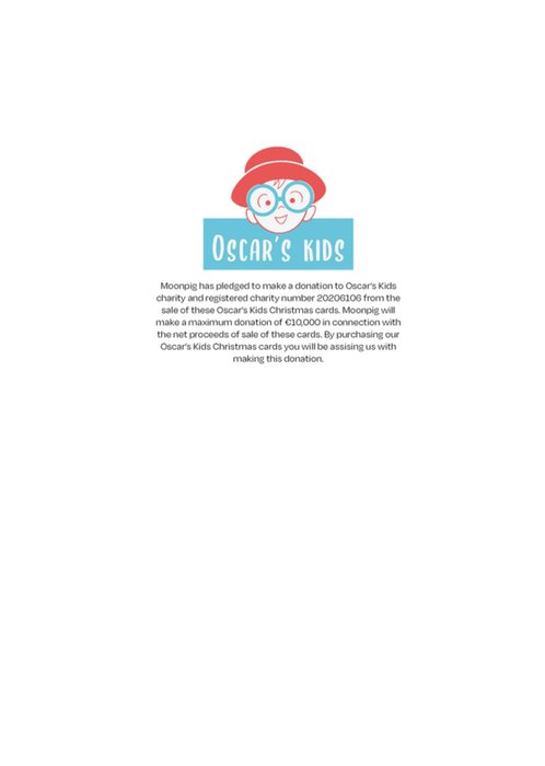 This card is one of ten unique designs in our Charity Christmas Collection, each created by children from Oscar's Kids, an Irish children's cancer charity. When you choose this card, you're not just sending holiday cheer – you're also making a meaningful contribution. All proceeds from the sales of these cards are donated to Oscar's Kids, helping spread joy and support to those who need it most.