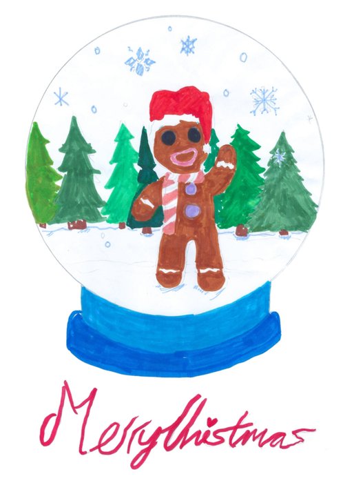 Featuring a fun, festive illustration of a gingerbread man in a snow globe.