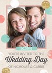 Pastel Spots And Glitter Dots Personalised Photo Upload Wedding Invite Card