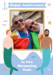 The card reads "Happy anniversary to two mermazing dads".