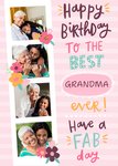 "Happy birthday to the best Grandma ever! Have a fab day". 'Grandma' can be personalised!