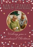 The card reads:"nan and grandad, wishing you a wonderful christmas"