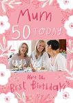 Photo Upload Pink Floral Mum 50th Birthday Card