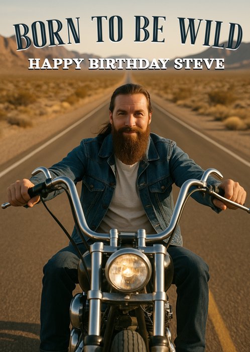 Photographic Born To Be Wild Face Swap Photo Upload Birthday Card