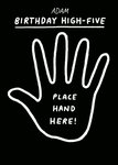 "Adam birthday high-five, place hand here" With Adam being editable