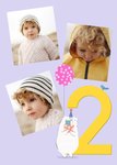 Pigment - Three photo upload card on a lilac background. There is an illustration a white bear wearing a party hat and holding a balloon and Birthday presents. There is a large yellow number 2 in the background, with a bird sitting on it.