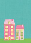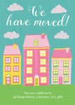 Pink Cartoon Houses Housewarming Party Invitation