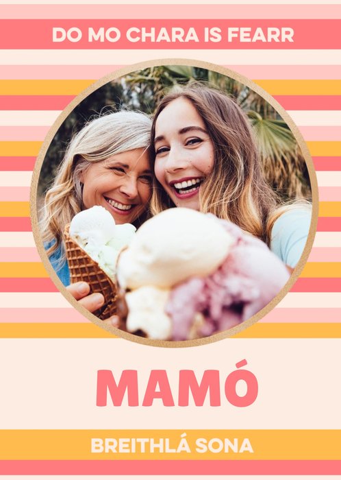 Pink Photo Upload Do Mo Chara Is Fearr Mamó Birthday Card