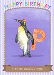 Pinstriped P Is For Penguin Personalised Birthday Card