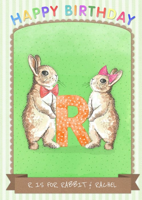 Pinstriped R Is For Rabbit Personalised Birthday Card