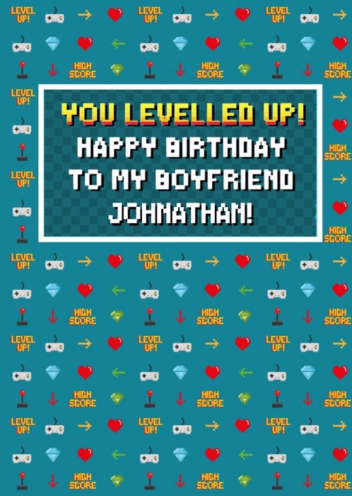 Pixel Gaming Level Up Boyfriend Happy Birthday Card