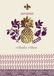 Plum And Metallic Gold Pineapple Personalised Birthday Card