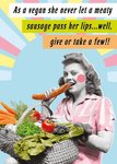 "As a vegan she never let a meaty sausage pass her lis...well, give or take a few!!"