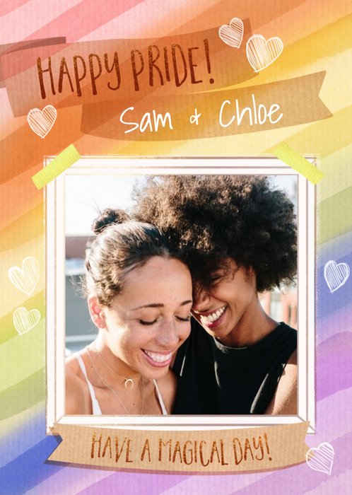 Rainbow and Hearts Photo Upload Happy Pride Card