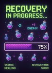 "Recovery in progress... +1 Energy, 75% Status: Healing Respawn timer: Soon.