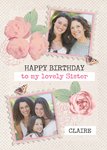 Roses And Butterflies Personalised Photo Upload Happy Birthday Card For Sister