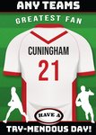 "Any team's greatest fan Cuningham 21 have a try-mendous day!". 'Any team's' must be personalised, 'Cuningham 21' can be personalised!