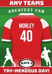 "Any team's greatest fan Morely 40 have a try-mendous day!". 'Any team's' must be personalised, 'Morely 40' can be personalised!