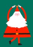 Featuring a painted effect illustration of a Santa with his arms pointing in the air in the position of a ballerina, in the shape of a tree on a green background.