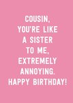 Scribbler Cousin You're Like A Sister To Me Extremely Annoying Typographic Birthday Card