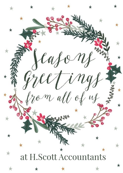 Seasons Greetings From All Of Us Cute Wreath Christmas Card