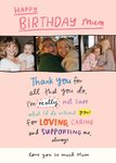 "Happy Birthday Mum. Thank you for all that you do, I'm really not sure what I'd do without! For loving, caring and supporting me, always. Love you so much Mum."