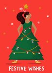 Sinead Hanley Illustrated Character in Tree Costume Christmas Card