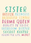 Sister Colourful Typography Birthday Card