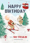 "Happy birthday. Have a ski-tacular celebration Alex!" "Alex!" is editable.