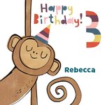 Smiling Monkey Personalised Happy 3rd Birthday Card