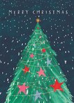 Snowy Night Sky Tree Illustrated Merry Christmas Card