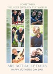 Front of card: Featuring six photo frames in two columns with text above and below. Text reads: "Sometimes the best mum's in world are actually dads happy Mother's Day dad". 'Happy Mother's Day dad' can be personalised!