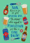 "Son, here’s to you on your special day. The man who’s aged to perfection just like a fine brew!".