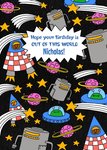Spaceships Space Astronauts Aliens Out Of This World Birthday Card
